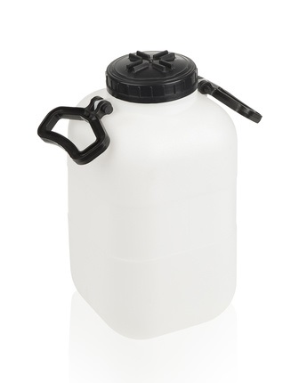 Hygienicky nezávadné plastové fľaše s držadlami a otočnými uzávermi. Vyrobené z HDPE. Praktické uchopenie. Spĺňajú podmienky pre styk s potravinami - vyhlásenie o zhode. Rozmer: 26x26x50cm dxšxv Šírka krku 11,5cm Farba Natur