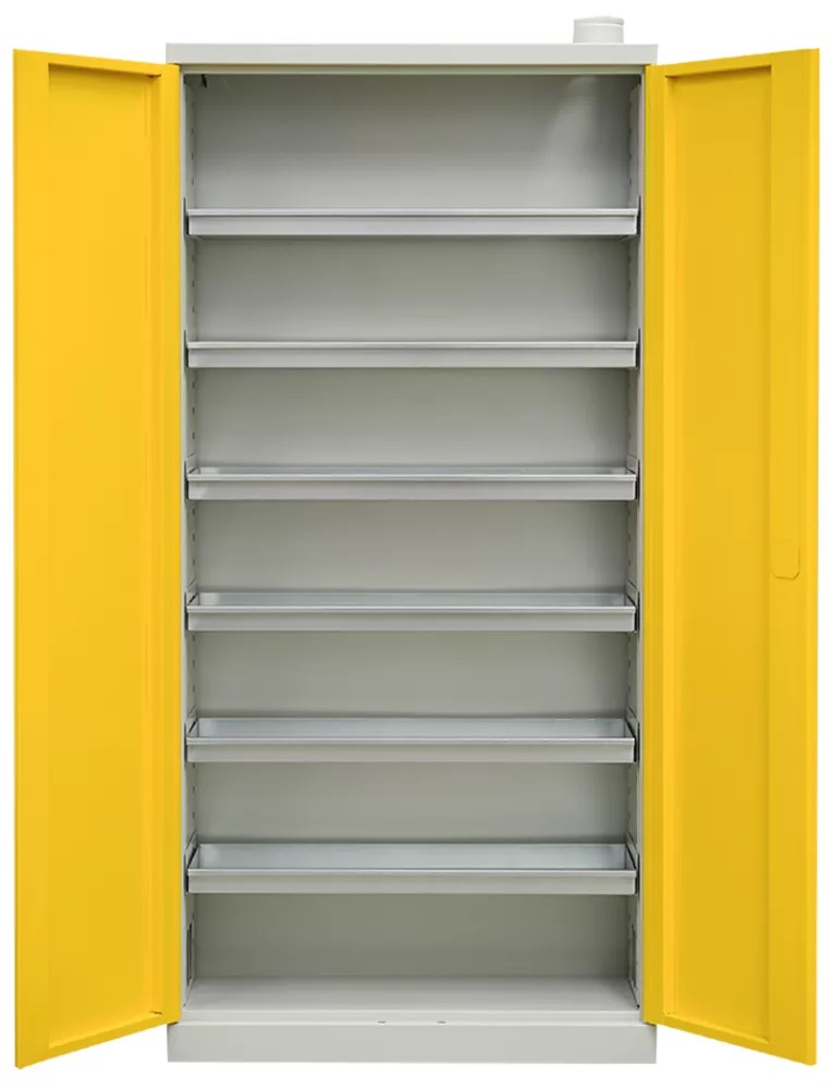 - Chemická skriňa s komínom 1920x920x380 mm, 6 vysúvateľných políc, farba šedo/žltá