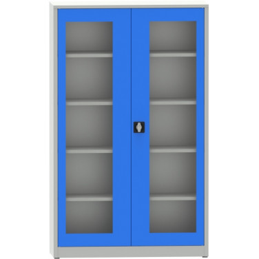 Dielenská skriňa 1950x1200x400mm, plexi dvere, 4 police , šedo/modrá