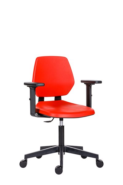 - Pracovná polyuretánová stolička, farba červená, na kolieskach, nosn.150kg