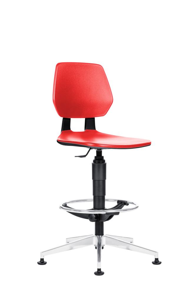 - Pracovná polyuretánová stolička vysoká, farba červená, na klzákoch, nosn.120kg