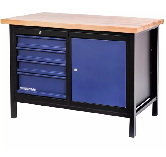 Pracovný stôl, 1190x650x850mm šxhxv, 1x skrinka, 3xzásuvka, farba čierno/modrá