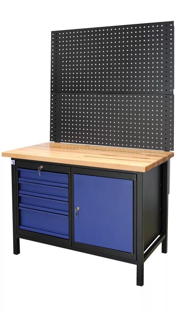 - Zostava prac. stôl perfo , zásuvky+skrinka, 1190x680x1920mm šxhxv, čierna/modrá